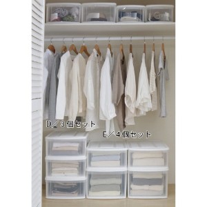 衣類や小物の収納に便利な樹脂製チェストです。中身が見えるクリアタイプで、シーンを選ばず使えるシンプルさがGOOD。しっかりしたつくりでピタッとスタッキングでき、引出しの出し入れもスムーズです。7タイプの豊富なラインナップから、収納量やスペースに合わせてお選びください。「D」「E」はクローゼット収納に、「F」「G」は押入れ収納におすすめのサイズです。かさばる収納ケースの複数買いも、直接ご自宅に届くお手軽さは通販ならでは♪