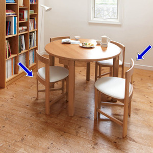 椅子が直径105cmの丸型テーブルにすっきり収まるダイニングシリーズの椅子2脚組。お部屋を広々使える工夫が施されています。ホワイトオーク無垢材を贅沢に使用し、張地は汚れに強い合成皮革です。直径105cmにすっきり収納!!チェアが直径105cmの丸型のダイニングテーブルにすっきり収まるダイニングセット。椅子の背もたれが出っ張らないすっきり・省スペース設計です。狭小住宅でもお部屋を広々使える工夫が施されています。また、素材にはホワイトオーク無垢材を贅沢に使用し、しっかりした造りで高級感があります。〜狭小住宅でもお部屋を広々使える工夫〜■直径105cmの丸型のテーブルに、チェアが背もたれごと収まります。■円卓なので距離がちじまり会話も弾みます。〜ホワイトオーク無垢材を使用した贅沢なつくり〜■テーブル、チェアフレームにはホワイトオーク無垢材を贅沢に使用し、しっかりした造りで高級感があります。■テーブル天板にはウレタン塗装を施し汚れも配慮。汚れたらサッと拭き取れます。 食事はもちろんパソコンデス…