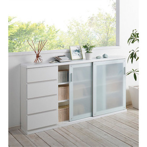 省スペース カウンター下収納庫 収納物の見やすいガラス戸 引き戸 アルダー 引き出し幅44.5高さ87cm
