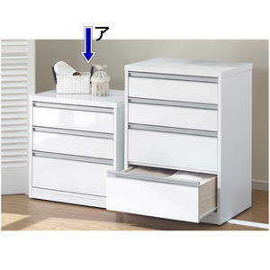 隠しキャスター付きのチェストで見た目すっきり、移動ラクラク!コンパクトな幅60cmとたっぷり収納できる120cmを揃えたチェスト。押入れやウォークインクローゼットの空いたスペースに設置するの便利です。たっぷり収納しても軽く開け閉めできるストッパー付きスライドレールを全段に採用したローチェスト(タンス)。隠しキャスター付きで見た目はすっきり、移動がラクラク。お掃除や模様替え時簡単に動かせるので大助かり!引き出し内部に金具が出っ張らない、衣類にやさしい造りです。横幅いっぱいのアルミ調の樹脂取っ手も持ちやすく、使いやすい設計。前面は水や汚れに強いポリエステル化粧板を使用。ディノス衣類収納家具の中でも特に人気のロングセラー商品です。※(イ)メタリックブラックは、金属のような光沢感(ガンメタリック)があるシートを使用しています。ラメのような細かい輝きがあるため、見た目は真っ黒ではなく、黒とダークグレーの中間色に見えます。画像の説明≪組合せ例≫ ※(ア)ホワイトこの商品は下記のサービスが選択できます…