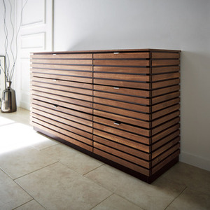 正面だけでなくサイドにも格子柄の入ったデザインチェスト。フルスライドレールで収納機能も充実しています。天然木横格子のモダンデザインに収納機能をプラス●前面だけでなく横側にも施した横格子。上質感を高める為にブラウンにはウォルナット天然木、ナチュラルにはホワイトアッシュの天然木を使用しています。●幅広の引き出しでも、いっぱい中身を詰めても開閉しやすいようにフルスライドレールを使用。最後まで引き出しを開けて収納ができます。●引き出しの内部は衣類を傷つけないように化粧仕上げをしています。●本体に優しい木目に対して取っ手はアルミ製のシルバー色。全体の印象を引き締めるアクセントになっています。2サイズのシリーズ展開●サイズ展開は幅80.5、幅120.5 に2サイズとなっています。こちらの商品は幅120.5段です。画像の説明(ア)ダークブラウンこの商品は下記のサービスが選択できます。※組み立て・運び込み・引き取りサービスは日時指定ができません。お届け前に配送所より配達日時のご連絡をさせていただきます。…