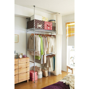 省スペースで天井まで活用できる突っ張りクローゼット。幅と高さが無段階に調整でき、限られたすき間に設置可能。幅50cm〜対応のサイズ展開。カーテン付きで急な来客時もサッと隠せる人気の衣類収納ハンガー。省スペースのハンガーラックで手軽に衣類収納スペースを●洋服を整理する場所をとらない収納が欲しいという方におすすめの収納ハンガー。●幅50cmからのサイズ展開。幅と高さも無段階に調整が可能です。●下段もハンガー付きなので、スカートやパンツ類もまとめて収納できます。●コートハンガーやクローゼット収納をお探しの方に人気です。厳しい検査をクリアした頑丈設計&梁があっても設置できます●洋服の荷重を支える中間リングはスチール製の頑丈仕様です。●上部の突っ張り部分は別々に高さ調整が可能で複雑な梁も対応できます。●天井の高さや梁の位置に合わせてロータイプ・ハイタイプからお選びください。取り替え可能な目隠しカーテン付きです●付属のカーテン付きで、急な来客時にはサッと閉めるだけで衣類をスッキリ隠せます。●シンプル…