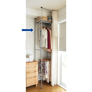 スッキリ 上下カーテン付き 突っ張り式スリムハンガー ハイタイプ ウォークイン突っ張りハンガー 高さ218〜280cm カーテンなし