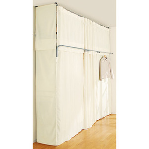 奥行53cm 上下カーテン付き 突っ張り式スリムハンガー ハイタイプ 幅80〜125cm