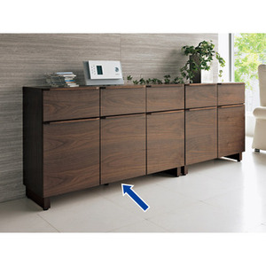 国産の丁寧なつくりで人気シリーズの使い勝手の良いリビングボード。前面は右端から左端までウォールナットの流れるような美しい木目がつながるようにひと手間かけて作られています。木目のつながりに気が遣われているかどうかで、見た目の美しさや高級感が全く違ってきます。●CD、DVD、LPレコードなどをたっぷり収納。