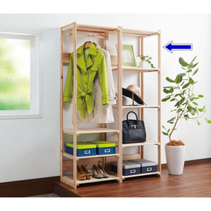 天然素材ならではのやさしい風合いでナチュラルモダンな上質空間を実現。建築材として使われる頑丈な国産杉を贅沢に使用した衣類収納ラックです。長く愛用できる丈夫さと、使うほどに深まる味わい深さが魅力です。-ゆったりできるナチュラルモダンな空間を-国産材の収納ハンガーシリーズ●洋服がたくさん掛けられる木製の頑丈ラックです。●天然素材が醸し出すやわらかな雰囲気と収納力が魅力の衣類収納です。●「ハンガー1段・棚3段」「ハンガー2段」「ラック」の3つのバリエーション。●幅は57cm、87m、117cmの3サイズをご用意いたしました。建築材にも使われる頑丈な国産の杉材を使用しています●国産杉を、生産から供給まで一貫体制を敷く「兵庫木材センター」の最新技術で加工。●その素材を知り尽くした地場工場にて製造し、熟練の職人によって丁寧に仕上げています。●国産杉は、しっかり目の詰まった木質による丈夫さが特長。●棚板1枚当たり25kgまで載せられる耐荷重。収納ケースやスーツケースもOKです。●無塗装ならではの天然の…