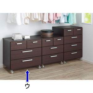 ご家庭のクローゼット収納スペースを無駄なく有効利用できる衣類用の収納タンスです。【POINT】■奥行53cmの深型通常のチェストの奥行40〜45cmに対して深めの設定。これは奥行55〜60cmあるクローゼット、ウォークインクローゼットの空間を少しでも無駄のないように使っていただきたいためです。■大引き出しはレール付き奥行が深い分収納力がアップし、引き出しが重くなるので、開閉がしやすいスライドレール式を採用しました。■クリアキャスター仕様移動がらくらくできて、お掃除もしやすくなるキャスター式です。おしゃれなクリアキャスターを採用しましたので見た目もGOODです。■サイズバリエーションは6種類幅60・73・90cm、高さ66.5(3段)・86(4段)cmの6タイプご用意。設置スペースやハンガーに掛けてある衣類の丈の長さなどに応じてお選びください。■色バリエーションは3種類(ア)ナチュラル(イ)ホワイト(ウ)ダークブラウンの3色をご用意。3色すべて木目調のデザインで優しい印象。部屋の雰囲気、壁…