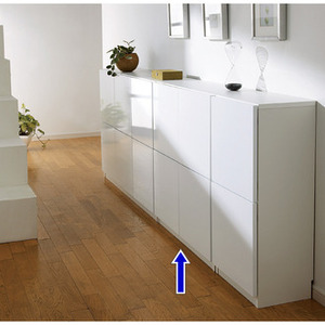 備え付け家具のように壁にぴったり置けてお部屋を整理整頓できる! 壁のコンセント前にも置いてもコンセントが使える便利な構造がポイントです。◆家の白い壁紙にも、フローリングの木目にも合う色展開とツヤのある光沢感。◎前面には光沢感のある素材を使用してツヤ感があるので、空間を清潔感があり明るくおしゃれに。◎天板や前面はオレフィン化粧板を使用。キズがつきにくく汚れに強いという特徴があります。◎マンションなど白い壁紙にも合うモダンなホワイト色が一番人気です。◎フローリングの色やお部屋のほかの家具の色に合わせて選べる3色。◎扉の上面のシルバーライン(取っ手になります)がシャープでモダンな印象に。◆秘密は背面!壁のコンセント前にも設置できます!◎壁のコンセント前には家具を置くことが通常できませんが、本商品は背面の背板部分は大きく開口部を設け、 壁付けに設置しても配線が可能にしました。モデムやルーターも扉内に置きながら電源を取れます。◎壁付けで設置いただけるよう幅木よけカットを施しています(奥行1cm×高…