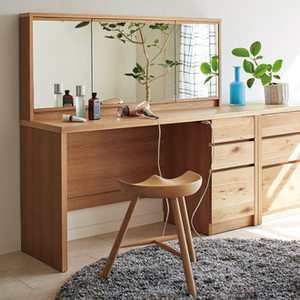 アルダー天然木ギャラリー収納シリーズ 幅69ドレッサー&スツール