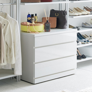 ロータイプ クローゼット チェスト 隠しキャスター付き 3段 引き出し全開 フルスライドレール付きシンプルチェスト