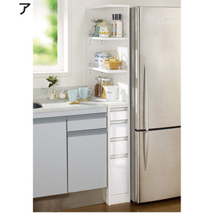 中身が見渡せて取り出しやすいオープンタイプの隙間収納。わずか幅12cm〜30cmのすき間に収納できるキッチン収納家具。上段は前からも横からもサッと取り出せる2面オープン棚で、収納棚板は3cmピッチで高さ調整が可能、引出しにはボトルも入る機能満載の隙間家具です。良く使う物を取りやすい場所に。動線がスムーズになる便利なキッチン収納庫◆たった12cmからの隙間がキッチンストッカーに変身します。◆サイドオープン部には調味料や使う事の多いキッチンツールを取り出しやすく。◆スパイスラック、調味料ラックとしてもご使用頂けます。◆棚板は3cmピッチ5段階でそれぞれ調節可能。落下防止のこぼれ止めバー付きです。◆オープン棚の向きは組立時に左右どちら向きにも設定可能です。◆前面は光沢感があり、汚れにくく、お手入れし易い素材で作りました。(ポリエステル化粧合板)◆側面も化粧仕上げだからお掃除もラクラクで清潔感をキープできます。◆たった12cmの隙間から、大量収納スペースにしてしまうアイデア満載のすきま収納です。…
