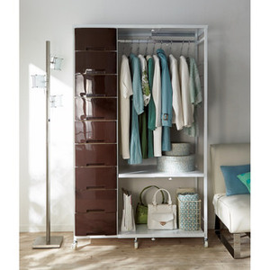 ハンガーラックと衣類チェストが1台になった便利な収納家具。たたむ、掛けると用途で使い分けて衣類の管理をわかりやすく。本体の幅も86cmから105cmに伸縮するのでスペースに合わせてお使いいただけます。オフシーズンの衣類や小物を一ヵ所に集めて、衣替えもラクラク。画像の説明(ア)ブラウン リビングに。この商品は下記のサービスが選択できます。※組み立て・運び込み・引き取りサービスは日時指定ができません。お届け前に配送所より配達日時のご連絡をさせていただきます。※別途配送料金がかかります。