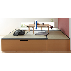 フローリングに置くだけでくつろぎの和室を演出。洋室をい草の香りが爽やかな高床式置き畳コーナーにかんたん模様替え!畳下部は跳ね上げ式開閉の大容量の収納庫。すぐに使える完成品で手軽にリフォーム。〜手軽に安らぎの和空間インテリアが実現するユニット畳〜◆くつろぎのスペースが生まれると同時にたっぷりの収納力でお部屋もすっきり。◆洋室の一画を使って和モダンなインテリアを実現できます。◆高床式置き畳なのでうたた寝やちょっとしたティータイムを過ごしてみてはいかがでしょう。◆うたた寝に便利な簡単な畳ベッド・収納ベッドとしてもお使い頂けます。◆洋風のリビングでも自分だけの和室スペースを持つ事ができます。◆インテリアに合わせてダークブラウン・ナチュラルの2色からお選びいただけます。◆インテリアに合わせて畳の「ヘリ無し」「ヘリ有り」をお選びいただけます。◆お部屋のスペースに合わせて豊富なサイズバリエーションからお選びいただけます。〜畳の下は長尺物もしまえる大容量収納スペース〜◆充実の収納力でリビングが広々と片付…