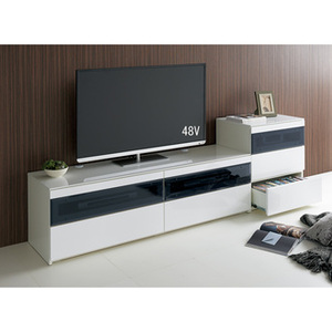 洗練されたスタイリッシュなフォルムと、磨き抜かれた光沢が美しいリビングシリーズ。部屋を上質な空間へと導きます。ダウンライトや間接照明の映え、まるでラウンジにいるようなリッチな気分に浸れます。シンプルで無駄のない機能美に満ちたデザイン。・大型4Kテレビにも対応ワイド160cm。天板耐荷重も約60kg。・フラットな前面仕上げにコントラストの効いたモノトーンが映えるパールホワイト色とシンプルなデザインの中に端正な美しさがあるミッドブラック色。・光沢感があり無駄のないシンプルなデザインがリビングルームを素敵に演出します。機能も充実・前板と天板には高級感があり光沢が美しいいダイヤモンドハイグロス仕上げ。キズ・汚れにも強く美しい光沢を保ちます。・プッシュ式フラップ扉内にAV機器が収納できます。扉を閉めた状態でもリモコン操作が可能です。・フラップ扉内には4口コンセント(計1500W)1個付きなのでブルーレイデッキなどの設置に便利です。・天板後方に配線コード穴2箇所付き。・引出しは出し入れしやすいフルス…