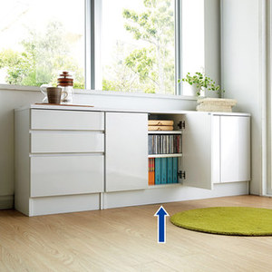最近主流のカウンターダイニングの下にすっぽり収まる高さのカウンター下収納庫。インテリアを選ばないシンプルでおしゃれなデザインと、高さが低くなった分の収納力を確保する、1cmピッチの棚板が特徴です。カウンターダイニングーの下にもきちんと収まる高さ60cmがポイント昨今人気の、キッチンカウンターにダイニングチェアをセットできるカウンターダイニング。ちょっとした軽食やお子様の宿題にと大活躍ですが、収納もプラスしたい。そんな方のために、ダイニングカウンターの下にも収まる高さ控えめのカウンター下の収納のご提案です。散らばりがちなキッチンやダイニングの小物を無駄なく収納できる充実の機能性です。ダイニングカウンターにピッタリな小さな収納。小さくても本格家具で造り付けのような美しさ。◆昨今主流になりつつあるカウンターダイニングは、天板から床までの高さが65cm〜70cmが一般的。◆これまでの一般的なカウンター下収納の高さは80cm〜90cmの物が多く、カウンターダイニング下には設置できませんでした。◆こ…