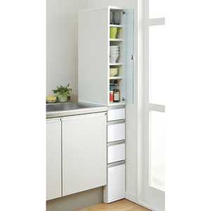 あふれた食器をスキマにかしこく整理整頓できる、スリムなキッチン収納。キッチンのちょっとしたすき間を利用して、よく使う食器や置き場所に困る調理器具などをすっきりと収納できます。隙間収納の引き出しの内部には傷や汚れに強いシートを採用し、カトラリーの直置きも安心。見えない所までこだわった食器にやさしいオススメすきま収納です。〜食器の収納のための充実の機能〜 【こだわり1】美しい半透明のガラス扉収納