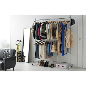大容量 人気 ハンガーラック 幅と高さが変えられるプロ仕様頑丈ハンガー 上下2段掛け付き シングルタイプ