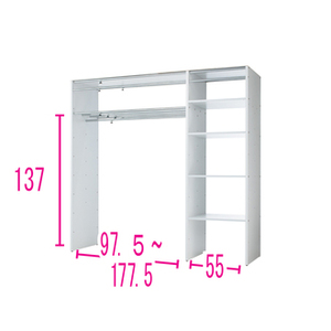 シワなく綺麗に洋服を収納できる木製パネルの伸縮ハンガーラック。洋服を畳んで収納できるので一目で場所がわかり取り出しやすい大容量のクローゼットハンガーです。取り出しやすさと大容量を一緒にしたアイデア商品です。幅伸縮に棚収納をプラスしたハンガーラックお部屋に合わせてサイズが変えれる幅伸縮に、綺麗に飾れる棚収納を一緒にしました。棚板を加えることでまるでクローゼットの様な収納が可能です。また木製サイドパネルを使用することで高級感のあるおすすめのハンガーラックです。使い方いっぱいの収納ができる木製棚のハンガーラック●棚収納にすることでアクセサリーや雑貨、洋服など取り出しやすく綺麗に収納できます。●棚板は6cm間隔で高さが調整できるので、収納物に合わせて高さを変更できます。●カーテンは棚収納部とハンガー収納部でわかれているので収納物に合わせて開け閉めできます。<棚収納おすすめの使い方>1.ついつい増えてしまいがちなパンツ類を畳んで収納!いつでもお気に入りの洋服が取り出せます。2.置き場所に困るバッグ…