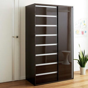 大容量で人気のタワーチェストにハンガーラックをプラス大量収納で定番人気のタワーチェストとハンガーラックを一緒にすることで1台で全ての衣類がスッキリ収納できます。Tシャツや下着などは引き出しに、コートやジャケットはハンガーラックにと洋服に合わせて収納できます。見た目や使いやすさにもこだわったアイデア商品です。光沢のあるデザインが高級を演出●インテリアに合わせやすい様にカラーはホワイトとダークブランの2色をご用意しました●ホワイト、ダークブラウン共に光沢のある素材を使用しお部屋に高級感をプラスします。●ハンガー収納部は引き戸で閉めると綺麗なクローゼットの様です。●シンプルなデザインだからこその使いやすい衣類収納庫です。設置スペースや使いやすさにもこだわりました●引き戸仕様にすることで取り出しの邪魔にならず省スペースで設置できます。●衣替えもしやすい様に引き出しは全段入れ替え可能です。●ハンガーラックの下段スペースはバッグなどの収納に便利です。●ハンガーラックはロングコートも掛けれるサイズ設計…