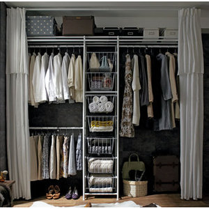 便利 突っ張り式 ハンガーラック 上下 左右カーテン付き ホワイト 引き出し付き ロータイプ カーテン取り替え自在 棚なしタイプ