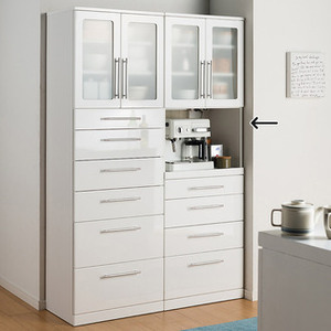 収納物に合わせて選べるバリエーション 収納たっぷりスリムキッチンL字型やU字型のコンパクトなキッチンは家事動線はスムーズな反面、収納スペースが限られるのが難しいところ。そんなキッチン収納庫を設置する幅が限られるからにご提案したい、幅がスリムで多様なバリエーションが揃ったキッチン収納棚です。幅の短いカウンターの狭いキッチンにもおすすめです。フチまで仕上げの美しい、ツヤ光沢のある表面材はお手入れも簡単。◆すべての前板にはお手入れが簡単なハイグロスエナメル塗装を採用。◆艶やかで透明感のある光沢が美しいだけでなく、汚れをふき取りやすい素材です。◆すっきりシンプルな光沢のあるホワイトが、キッチンをよりクリーンな印象にしてくれます。家電収納部は熱や蒸気に配慮したスライドテーブル対応を採用◆家電台部分にはスライドテーブルを採用。使用時には引き出して熱を逃がす構造に。◆打電ラックのスライドテーブルには滑らかに開閉できるレールタイプを採用。◆重たい家電を乗せてもスムーズに引き出すことのできるレンジラックで…