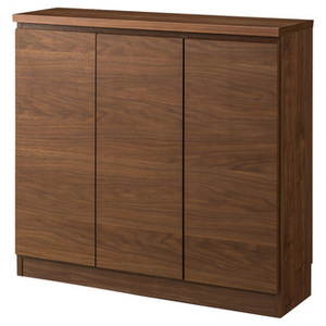 おしゃれ 天然木 カウンター下収納庫 ウォルナット薄型 3枚扉 ストレートライン 引き出しタイプ幅45cm 奥行き30cmタイプ