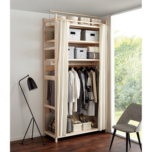 クローゼットハンガー 国産ひのきの 用カーテン 上下カーテン付き突っ張り頑丈ハンガーラック ハイタイプ 標準