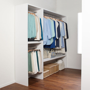 自宅にウォークインクローゼットが手軽に作れる収納シリーズ。空いた子供部屋や納戸を素敵な衣装部屋にリフォームできます。ハンガーラック、収納棚、引き出し付き棚の3タイプ。スペースに合わせて幅や奥行をお選びください。使わなくなったお部屋を、備え付けのようなウォークインクローゼットに変身。お好みの収納を組み合わせてレイアウトできます。対面式のクローゼットにもおすすめです。画像の説明コーディネート例 ※お届けは奥の【ハンガータイプ 幅150cm・奥行44cm】です。この商品は下記のサービスが選択できます。※組み立て・運び込み・引き取りサービスは日時指定ができません。お届け前に配送所より配達日時のご連絡をさせていただきます。※別途配送料金がかかります。