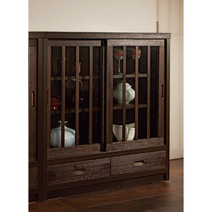 立体的な木目の質感と人気の格子デザインが美しくマッチ。引き戸と引き出しが備わった実用性も魅力です。桐 うづくり仕上げ