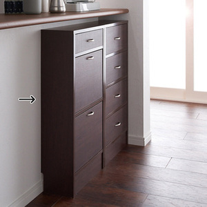 奥行19cm狭い空間にもぴったりフィット!開けしめしやすいフラップカウンター下収納庫狭いスペースにできる限り多くのものをしまうことができるように設計したアイデア隙間収納。台所のカウンター下の収納や窓下収納としての設置はもちろん、トイレ周りなど限られた空間に収納スペースを確保したい方にお勧め。コンパクトなサイズ設計で、狭いキッチンカウンター下はもちろん、一人暮らしのインテリアにもおすすめ。フラップタイプの収納で、狭い空間でも出し入れ簡単。◆フラップ式の収納なので薄型収納でも大きく開き、中身を確認しやすい点が魅力的。◆買い置きのキッチン周りの小物やリビング小物の収納に適しています。巾木カット付きで壁ぴったり◆せっかくの薄型収納でも、壁との間に無駄なスペースがあっては意味がありません。◆9cm×1cmの巾木カットで壁ぴったりに設置できます。どんなお部屋にもなじむ2色展開◆設置する場所に合わせてお選びいただけるよう、お色は2色ご用意しました。◆シックで落ち着いた色合いの『ダークブラウン』◆すっき…