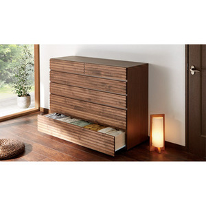 天然木による横格子柄のデザインがお部屋を広く感じさせ、落ち着いた雰囲気に染めてくれるチェストです。