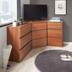 ホワイト ナチュラル チェスト コーナーも活用 コーナー用 3段 高さ68cm 国産 総地板仕様 隠しキャスター付き