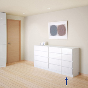 機能満載!様々なスペースに設置することを考えた壁面収納家具!シリーズのテレビ台の種類は幅、奥行、テレビ設置高さ、デッキ類収納数で選べる28種類。本体同士をつなげる側面の配線穴にコードを横に通せば壁際をはわせていたコードをすっきり隠せます。配線に配慮した家具シリーズなので、テレビをはじめ、パソコン、AV機器類周りの壁面収納にピッタリ。しかも奥行34cmの薄型タイプなので壁面いっぱいを収納スペースとして有効活用しつつも、圧迫感を抑えたモデルです。そんなシリーズに「衣類収納チェスト」が登場!幅は45.5・58・87cmの3サイズ。さらにそれぞれ3〜5段をご用意いたしました。引き出しは全段ストッパー付きスライドレールで開閉がラクラクです。台輪(本体を支える脚に当たる部位)にコードを通せるように、側面にコード穴が設置してありますので、同シリーズのTV台などの横に設置してコードを貫通させることが可能です。カラーは、(ア)光沢感のあるホワイト (イ)横木目調のナチュラル (ウ)横木目調のダークブラウン…