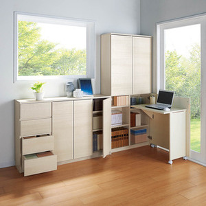 わずか奥行30cmの薄型設計●薄型折り畳み収納デスクシリーズ の幅90cm3枚扉収納庫。●折りたたみデスクやチェストと合わて窓下収納・カウンター下収納、リビングボードとして自在に設置可能。●可動棚は3cmピッチで調節できます。扉内有効奥行内寸は約27cm。雑誌やA4ファイルも収納できます。●最近の新築やリノベーション物件で人気の木目を感じるホワイトとシックなブラウンの2色をご用意。画像の説明コーディネート例(ア)ホワイト(木目) ※お届けは3枚扉キャビネットとなります。この商品は下記のサービスが選択できます。※組み立て・運び込み・引き取りサービスは日時指定ができません。お届け前に配送所より配達日時のご連絡をさせていただきます。※別途配送料金がかかります。