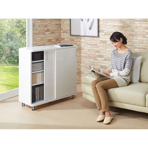 便利 ロータイプ キャビネット 移動ができるブック 引き戸タイプ幅87cm 裏面化粧あり ルーバーカウンター下引き戸収納庫 チェスト
