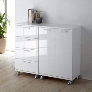 ナチュラル ホワイト カウンター下収納庫 移動ができるブックキャビネット 扉タイプ幅58cm 裏面化粧あり アルダー 引き出し幅44.5高さ87cm