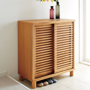 前面に無垢材を贅沢に使用した、伝統的な日本の美を感じる意匠。狭い玄関でも使いやすい引き戸仕様で、玄関に品よく溶け込む優雅な佇まいが魅力です。約20足収納可能。約20足収納可能です。アルダー無垢材を贅沢に使用した癒しのナチュラルデザインと快適な使い心地◆玄関に圧迫感が生まれない、奥行40cm。 ◆ギターなどの高級楽器や彫刻の素材にも使用される風合いのよいアルダー材を使用。◆脚部高さは9cmなので、ホコリが入っても毎日のお掃除も簡単。 ◆扉は格子デザインですが、板で覆われており、内側に埃などが入ることはありません。狭い玄関でも使いやすい引き戸扉でスムーズに開閉。◆靴の出し入れがストレスなくできる引き戸タイプのシューズボックスで、狭い玄関でも安心して設置いただけます。◆扉の開閉は女性の力でも簡単に開きます。また、戸車を調節することも可能です。使い勝手に拘った機能性◆棚は靴のサイズに合わせて3cmピッチで調節できます。◆棚板奥行が30cmなので、サイズの大きいメンズシューズも収納できます。◆床と…