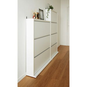 静かに閉まる薄型フラップシューズボックス シングル3段 幅90cm