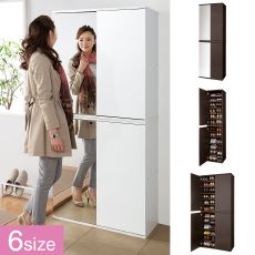 狭さやあふれる靴のお悩みを解決です。 玄関を広く見せる、ミラーと鏡面のツートーンが美しいシュ ーズボックス! 棚板は3.2cm刻みで効率よく収納可能。 縦置きは勿論、横並びにも設置できます。 「ミラー無し」も選べます。 おすすめアイテム(シューズボックス)