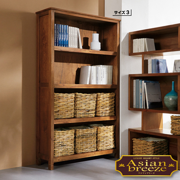 高級木材・ミンディの贅沢な質感が際立つ、存在感のあるシェルフです。飾り棚にも間仕切りにもなる、オブジェのような存在です。