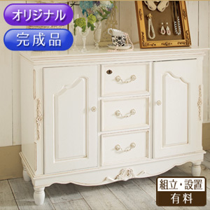 こちらの商品の販売価格は、商品価格(61509円)と梱包送料(2700円)を合算した価格となっております。クラシカルな表情のキャビネットで、お部屋を心ときめく演出に。取っ手や柱のクラシカルな加工が、アンティークな雰囲気のキャビネット。引き出しの内部も塗装し、上質感のある仕上がりに。扉内の棚板は使いやすい可動式で、最上段の引出はカギが掛けられる仕様です。(検索用)12z127■商品サイズ/幅110・奥行40・高さ80cm〔引出内寸〕幅27・奥行29・深さ16cm〔扉内内寸〕幅26.5・奥行34・高さ54.5cm〔可動棚〕1枚・3cmピッチ(扉内各1枚)■品質/天然木、MDF(ラッカー塗装)※鍵穴1ヵ所付、専用鍵付※この商品はアンティーク風な加工を施しております。※アンティーク感を重視しているため、引出しにレールは付いておりません。※引出し内は塗装が残っている場合がありますので、軽く拭いてからご使用ください。※ニオイが気になる方は、風通しのよいところに1週間程度置いていただくと軽減されます。…