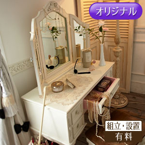 エレガント 美しい ドレッサー 3面 &スツール FH アンティーク 三面鏡 姫系 デスク ホワイト 鏡台 化粧台 高級 椅子 チェアー ※メーカーお届け品 アクセサリー収納付ミラーD 小※メーカーお届け品