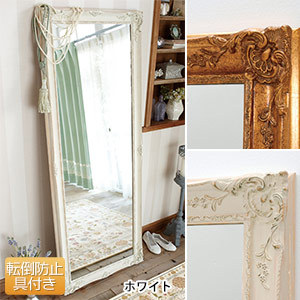 こちらの商品の販売価格は、商品価格(18252円)と梱包送料(540円)を合算した価格となっております。アートな佇まいの額縁風ミラーを、空間のインテリアに。ゴージャスな額縁風のフレームが、存在感のあるスタンドミラー。幅50・65・90cmのワイドサイズなので、お出かけ前の全身チェックにぴったり!アンティークな風合いのホワイトとゴールドの2色から選べます。(検索用)10z328同じシリーズの商品を見る >>■商品サイズ/(A)幅65・高さ165・厚さ4cm(B)幅50・高さ165・厚さ4cm(C)幅90・高さ180・厚さ6cm■品質/〔本体〕(フレーム)ポプラ材(ミラー)(A・B)4mm厚ミラー(C)5mm厚ミラー※飛散防止加工付※転倒防止金具付※この商品はアンティークな加工を施しておりますので、商品により色・風合いが若干異なる場合がございます。●中国製※メーカーお届け品--------------------------------------■大型商品をご注文の際の注意事項※商品のサイ…