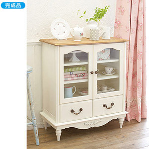 天然木 キャビネット EY 食器棚 白家具 木製 ホワイト チェスト タンス おしゃれ 完成品 姫系 カントリー風 ※メーカーお届け品 アンティーク風家具V60 B 小