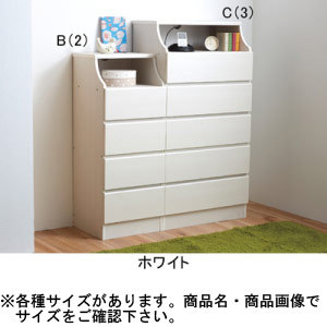 こちらの商品の販売価格は、商品価格(13824円)と梱包送料(1296円)を合算した価格となっております。使いたい場所にぴったり選べる組立簡単チェスト。優しい雰囲気のナチュラル、清潔で明るいホワイト、落ち着きのある上品なダークブラウンの3カラー展開。オープン部分はコスメ、文具、キッチングッズなど活用例は様々。さらに配線穴が空いているためデジタル機器も収納可能。引出+オープン部分のハイブリッド収納家具です。「組立が苦手な人でも、簡単に組立が可能に!」簡単組立構造となっており、木ダボ・スライドレールは工場で取付済み。引出部分はオリジナル部品で簡単に押し込むだけです。(検索用)カラー展開:Eホワイト・Eダークブラウン・Eナチュラル 01z429同じシリーズの商品を見る >>■商品サイズ/幅(A)28(B)44(C)60(D)75(E)90・奥行(共通)42・高さ(1)91(2)112(3)133〔耐荷重〕天板(A)(B)(C)約10kg(D)約7kg(E)約5kg■品質/〔本体〕プリント紙化粧…