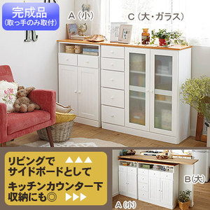 こちらの商品の販売価格は、商品価格(18144円)と梱包送料(1620円)を合算した価格となっております。家中の整理整とんに活躍♪奥行30cmの薄型キャビネット。カウンター下や腰窓の下にも設置OK。全タイプの高さ・奥行が同じなので、並べて天板のラインを揃えるとお部屋に広がりが生まれる効果も。Cは、レトロな雰囲気のガラス扉を使用しました。小ぶりなので、天板上はグリーンや雑貨のディスプレイに活用できます。(検索用)01z429同じシリーズの商品を見る >>■商品サイズ/〔A〕幅60・奥行30・高さ90cm〔B・C〕幅90・奥行30・高さ90cm〔引出内寸〕(A)幅24.5・奥行25・深さ8.5cm(B)幅24.5・奥行25・深さ〈小〉8.5〈大〉14cm(C)幅24.5・奥行25・深さ〈小〉9〈大〉14cm〔オープン部内寸〕(A)幅55・奥行27・高さ11cm(B)幅85・奥行27・高さ11cm〔扉内内寸〕(A・B)幅55・奥行27・高さ54cm(C)幅55・奥行27・高さ79cm〔可動棚〕…