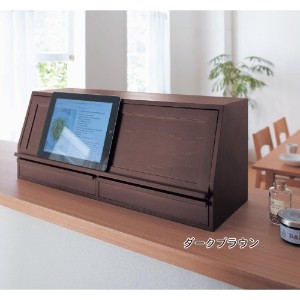 フラップ扉の取っ手部分にレシピカードやスマートフォン、タブレット端末などが立てられる収納ボックス。扉側をダイニングに向ければ、卓上で使う調味料などの収納にも。背面はコルクボード仕様で、メモや写真などをお手持ちのピンで留められます。 …