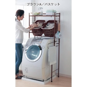 圧迫感がなく、女性でも使いやすい高さ。棚には洗剤やタオルを、バスケットには洗う物を仕分けして入れられるので、作業がぐんとはかどります。サイドにはS字フックが掛けられ、洗濯ネットなどの小物を収納可能。タオルバーは使いやすいスライド式で、左右どちらにも取り付けられます。洗濯機を動かさずに簡単設置できます。