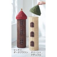 筒状のフォルムに三角屋根のフタが付いた塔型のバスケット。ナチュラルな雰囲気のあるラタンに、フェルトの窓を、フタには革製の持ち手も付いています。トイレットペーパー4個収納でき、コーナーにちょこんと置いても可愛い。 色: