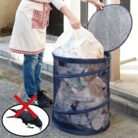 戸別収集の方におすすめ ゴミの飛散防止にカタログでは販売しておりません ゴミの散らかりを防止する、ドラムタイプの折りたたみ式カラス避けネットです。ゴミの量に応じて3段階にサイズ調整可能なジャバラ式。天面はカラスが寄り付きにくい、乱反射するアルミネットを使用しています。持ち去り防止に役立つ固定ループ付きなので、お手持ちの紐などを通し、玄関まわりの柵などに括り付けてください。また名前を書き込むこともできるので、更に盗難防止にも。底付き(ネット)で下からの侵入も防ぎ、掃除も簡単。使わない時は折りたためるのでコンパクトに収納できます。ベランダやテラスなどへの一時置き収納ストッカーとしてもお使いいただけます。